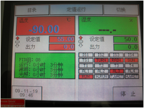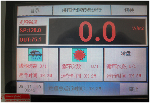 本公司自行研發(fā)的智能輻照測(cè)量調(diào)節(jié)系統(tǒng),包括16位真彩觸摸屏控制顯示界面和北京師大光電生產(chǎn)的輻照測(cè)量傳感系統(tǒng)及專用光纖,顯示界面如下: