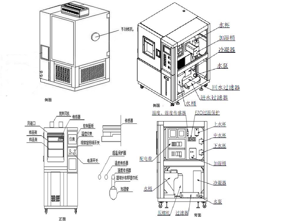 試驗(yàn)箱作用是提供高低溫度恒定、高低溫度交變等試驗(yàn)環(huán)境; 含制冷系統(tǒng)、加熱系統(tǒng)、風(fēng)道系統(tǒng)、控制系統(tǒng)、系統(tǒng)安全保護(hù)裝置等組成 |