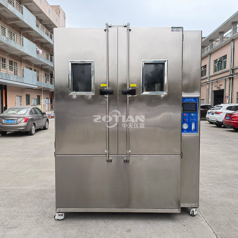 沙塵試驗(yàn)箱學(xué)名為“砂塵試驗(yàn)箱”,模擬自然界風(fēng)沙氣候?qū)Ξa(chǎn)品的破壞性,適用于檢測產(chǎn)品的外殼密封性能,主要用于外殼防護(hù)等級標(biāo)準(zhǔn)中規(guī)定的IP5X和IP6X兩個等級的試驗(yàn)。設(shè)備有載灰塵垂直循環(huán)的氣流,試驗(yàn)用灰塵可以循環(huán)使用 ,整個風(fēng)道采用進(jìn)口不銹鋼板制作,風(fēng)道底部與錐形料斗接口連接,風(fēng)機(jī)進(jìn)出風(fēng)口直接與風(fēng)道連接,再在適當(dāng)?shù)奈恢蒙蠈⒐ぷ魇翼敳繑U(kuò)散口接入工作室體,形成“O”型閉式垂直吹塵循環(huán)系統(tǒng),使氣流能順暢地流動,Z大限度的使塵土分散均勻。采用單臺大功率低噪音離心風(fēng)機(jī),根據(jù)試驗(yàn)需要用變頻調(diào)速器來調(diào)節(jié)風(fēng)速